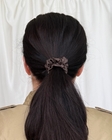 Внутрішня резинка на бавовняній основі, щоб добре тримало хвіст або пучок. Якщо у вас густе чи довге волосся рекомендуємо зав’язувати одночасно дві резиночки.