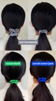 Внутрішня резинка на бавовняній основі, щоб добре тримало хвіст або пучок. Якщо у вас густе чи довге волосся рекомендуємо зав’язувати одночасно дві резиночки.