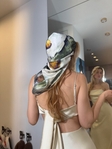 Матеріал: 100% натуральний шовк щільністю 22 момі у два шари (ми не використовуємо мікрофібру). З одного боку двостороннього тюрбана - шовк з прямим цифровим друком картини Metamorphosis, з іншого - такий же по щільності однотонний шовк.Гудзик на обидві сторони тюрбана. Обережно змімайте тюрбан з мокрого волосся, щоби не зачепитися внутрішнім гудзиком (якщо один з них буде заважати, то другий можна відрізати з часом).Пакування: у бавовняний мішечок та паперовий брендований конверт, листівка з картиною бонусом.Перевірено: шовкові аксесуари – безумовно, прояв любові до себе та підвищення самооцінки.Рекомендації:- Шовк щільністю 22 momme (одиниця вимірювання ваги шовку на квадратний метр) не підійде для людей з густим та довгим волоссям. Подивіться іншу картку товару на нашому сайті з тюрбанами для 3-4 довжини.